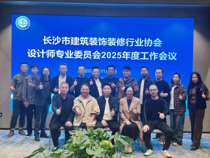 11月5日下午,长沙市建筑装饰装修行业协会设计师专业委员会2025年度工作会议在延年江境酒店召开。协会会长康强新、秘书长罗育梅、设计委轮值主任周港、助理刘倩柯及设计委全体委员出席会议。会议由秘书长罗育梅主持。