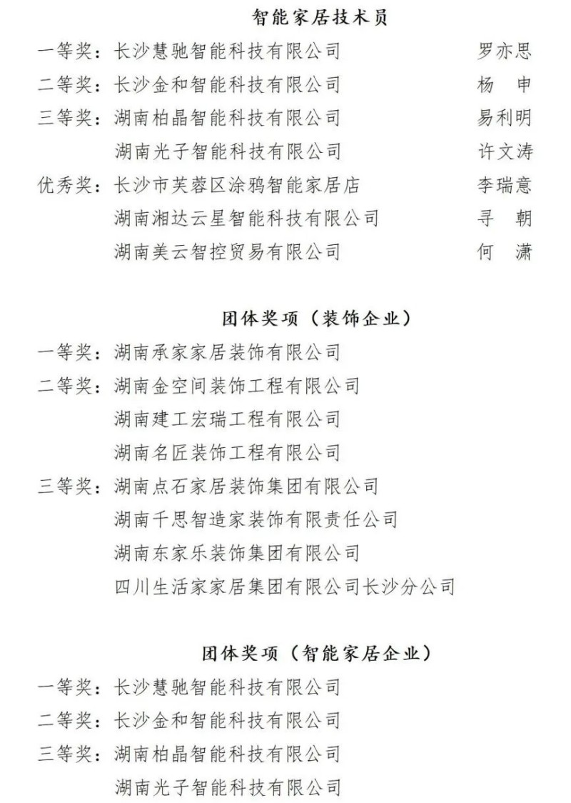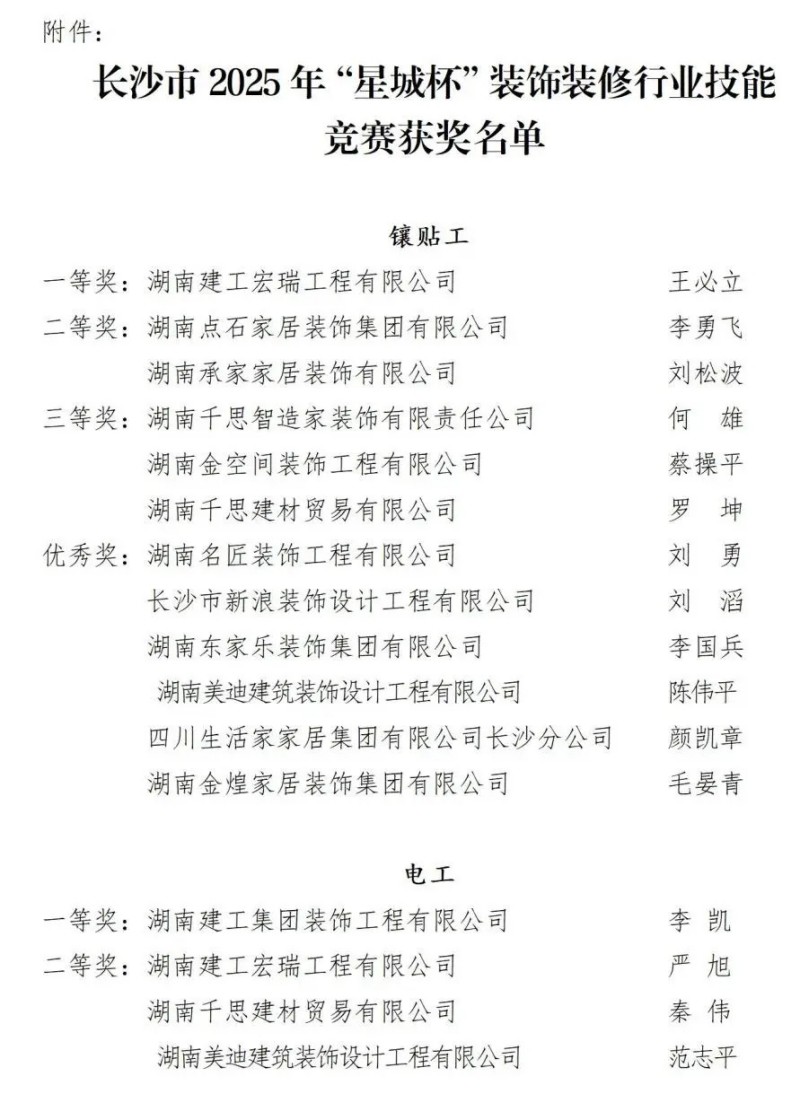 长沙市2024年“星城杯”装饰装修行业技能竞赛获奖名单如下: