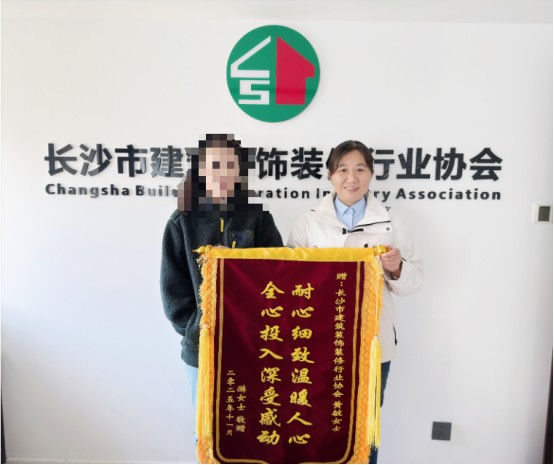 “房子现在已经全部验收合格,我们双方意见也已完全达成了一致,谢谢你们!”12月1日,当事人游女士将一面写有“耐心细致暖人心全心投入深受感动”的锦旗亲手送到人民调解员黄敏手中,以表达对长沙市建筑装饰协会及调解员担当作为、解决民忧的感谢之情。