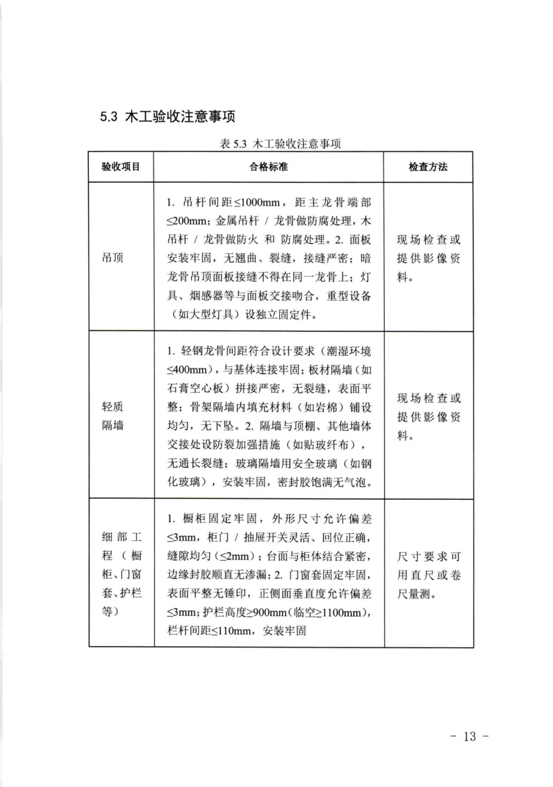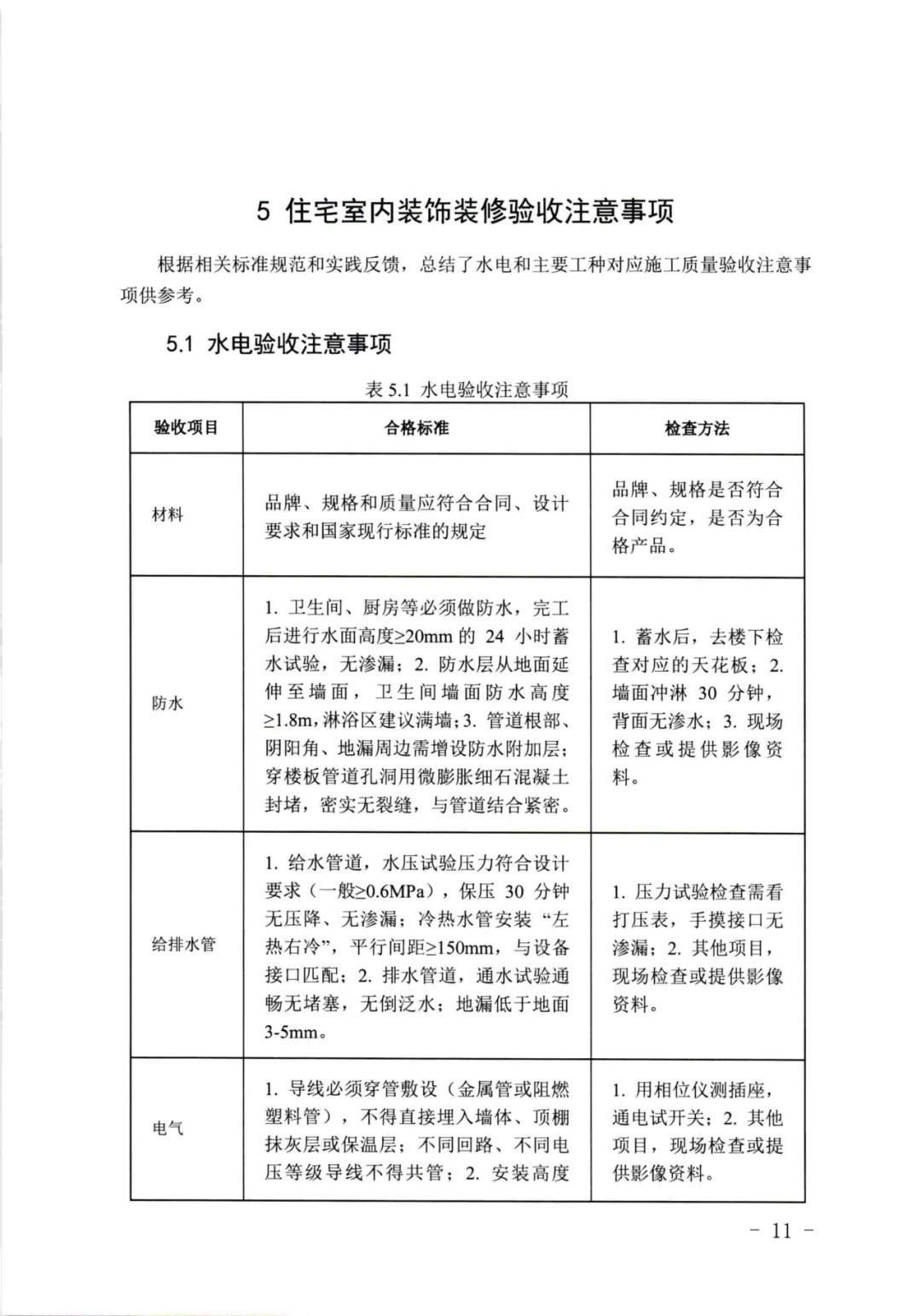 针对广大业主关注的验收环节,《指南》以表格形式归纳了水电、泥工、木工、安装等主要工种的验收注意事项与合格标准,提供了直观、可操作的检查方法参考,助力业主把控工程质量。