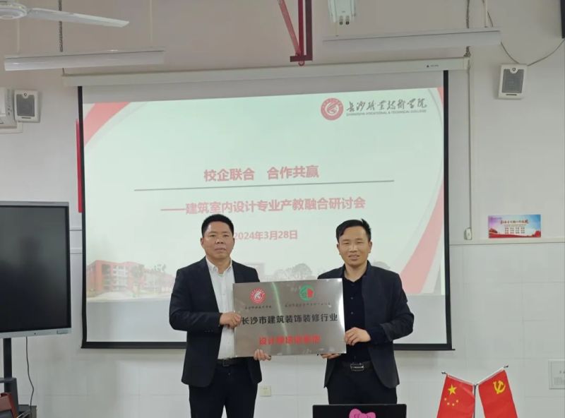 长沙职业技术学校建工学院李奇院长主持会议各项议程。会议对对专业人才培养方案、行为竞赛规程、装饰装修材料展厅建设方案及校内外师资体系建设进行了研讨。会上协会康强新会长向李奇院长颁发了“行业设计师培训基地”牌匾。