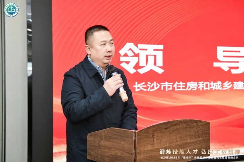 长沙市住房和城乡建设局党组成员、副局长刘学军、房屋安全处处长周新卷、工会工委副主任卢文政、长沙市总工会劳动和经济服务部部长沈玻、长沙市中等城乡建设职业技术学校校长刘广宇、长沙市建筑装饰装修行业协会会长康强新,以及获奖选手和单位代表共同参会。会议由长沙市建筑装饰装修行业协会秘书长罗育梅主持。