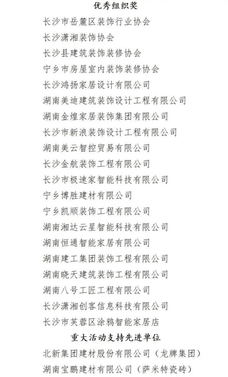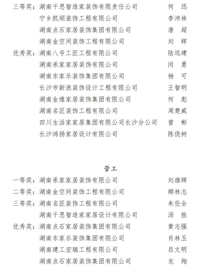 长沙市2024年“星城杯”装饰装修行业技能竞赛获奖名单如下: