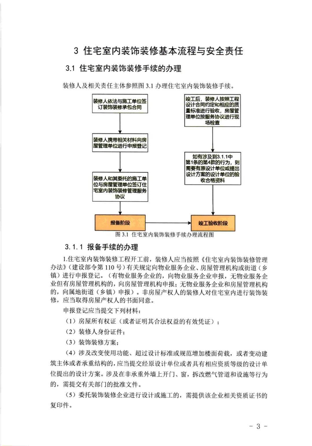 《指南》系统梳理了装饰装修活动的基本流程与各方安全责任。明确装修开工前,装修人须依法向物业服务企业或属地街道(乡镇)等房屋管理单位进行申报登记,签订管理服务协议,并提交包括装修方案、安全承诺书等必要材料。施工结束后,应在规定时间内告知管理单位完成情况,实现销号闭环管理。
