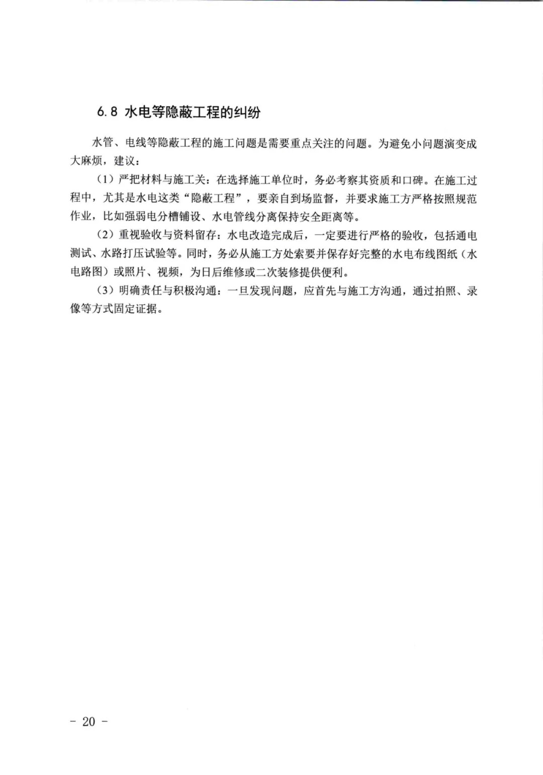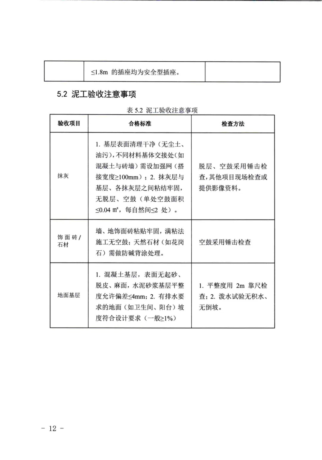 针对广大业主关注的验收环节,《指南》以表格形式归纳了水电、泥工、木工、安装等主要工种的验收注意事项与合格标准,提供了直观、可操作的检查方法参考,助力业主把控工程质量。