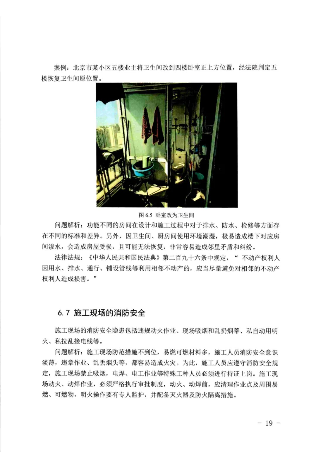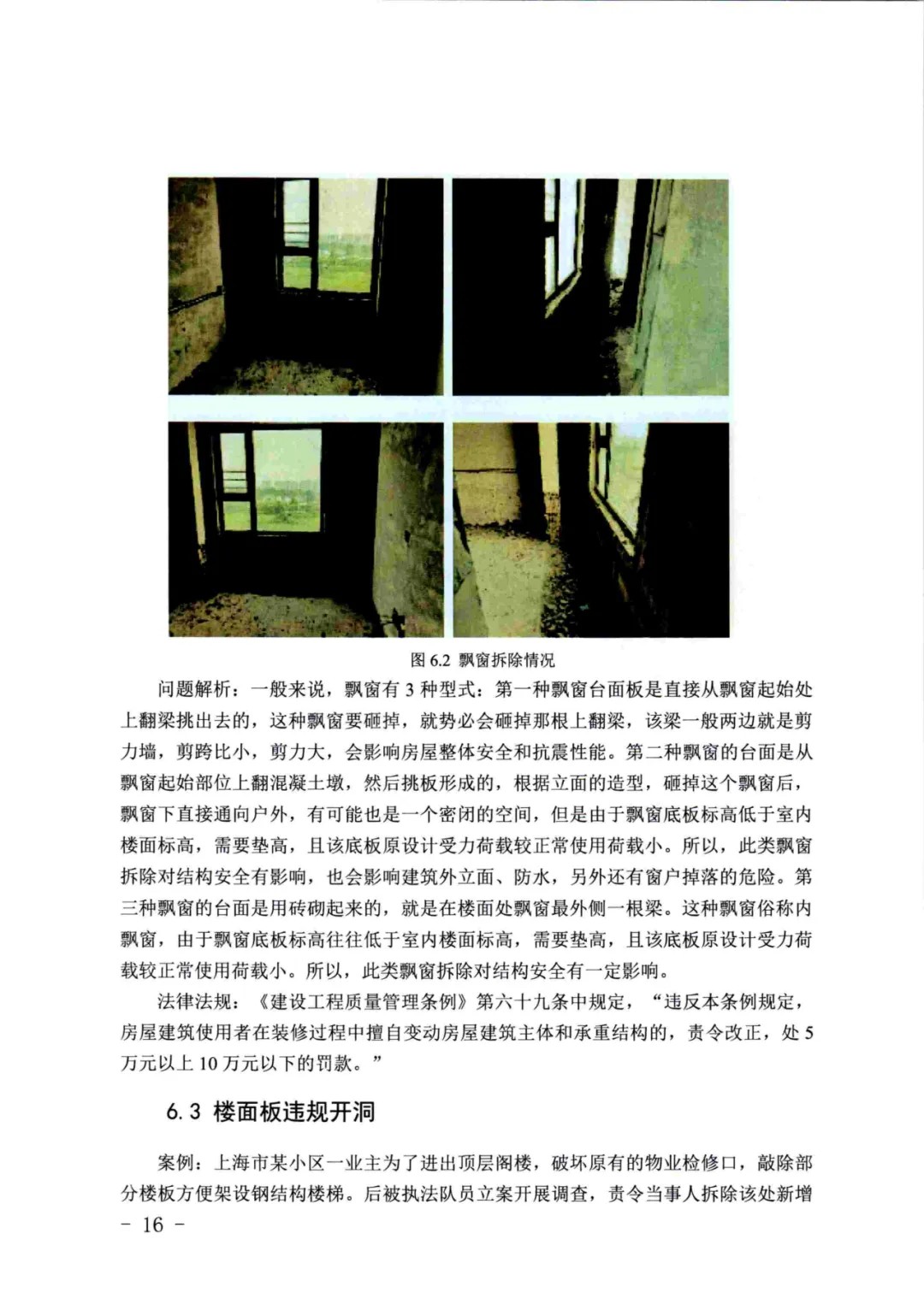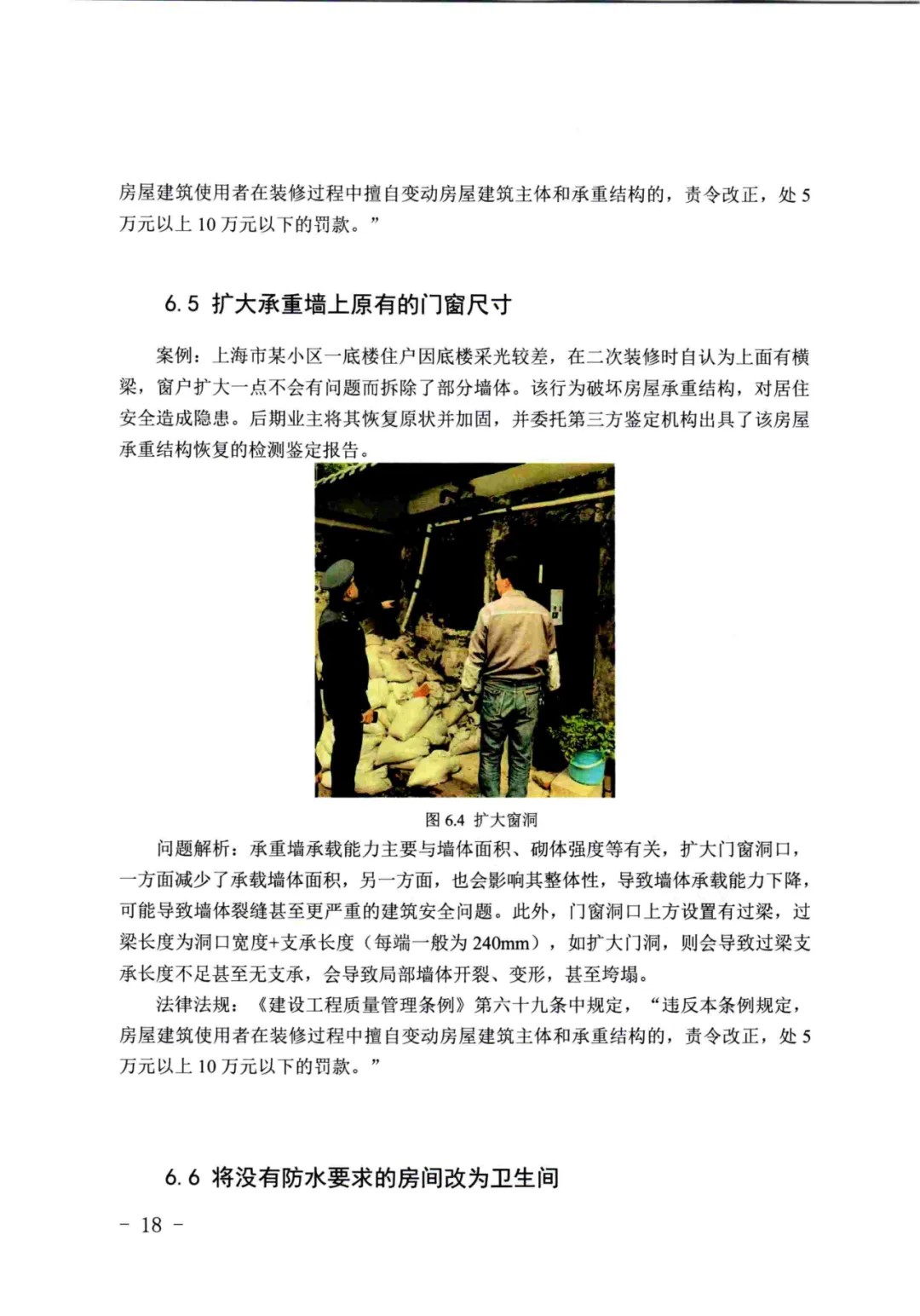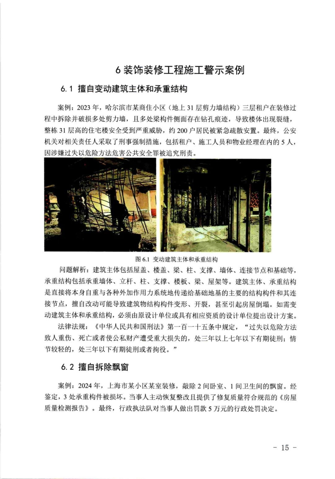 为强化警示教育,《指南》结合国内发生的擅自变动承重结构导致整栋楼疏散、违规拆除飘窗被处罚、梁板开洞损伤钢筋等真实案例,图文并茂地解析问题危害,并援引相关法律法规条文,警示装修各方主体必须严守安全底线,否则可能面临法律制裁与经济处罚。